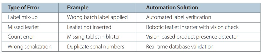 Human errors in packaging can have serious implications – from regulatory recalls to patient harm. Automation minimizes these risks by eliminating subjectivity.