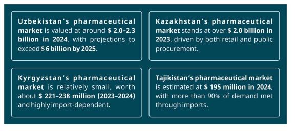 Governments across the region are accelerating industrial growth and encouraging foreign investment. Uzbekistan alone is implementing 104 pharmaceutical projects worth US$ 1.25 billion through 2026 to strengthen domestic production. The country’s flagship Tashkent Pharma Park, valued at US$ 388 million, will provide advanced infrastructure for R&D and manufacturing, generating more than 3 000 jobs. Multiple Free Economic Zones (FEZs) and targeted policy incentives are helping to attract global machinery manufacturers, API suppliers, and contract partners.